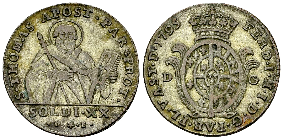 . Ferdinando I di Borbone. 20 soldi o lira 1795 (4.15 g).