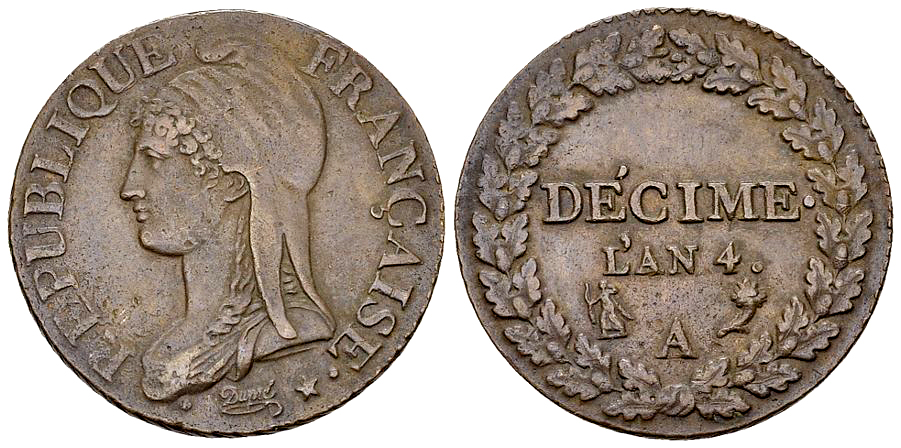 Lot 101. France, AE Décime AN 4 A, Paris