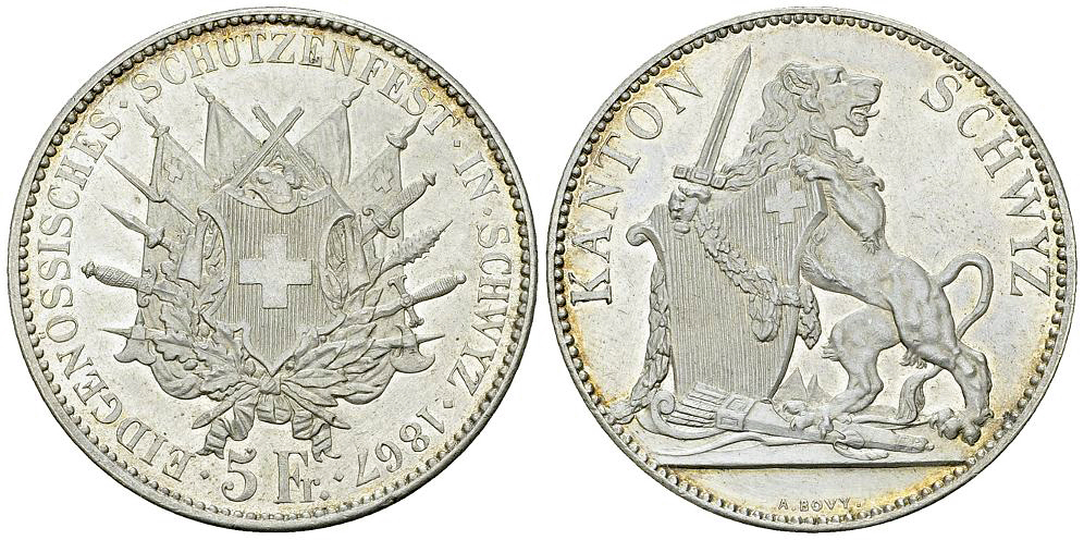 Lot 401. Schwyz, AR 5 Franken 1867, Eidg. Schützenfest