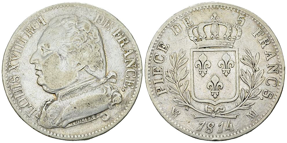 Lot 105. Louis XVIII, AR 5 Francs 1814 MA, Marseille