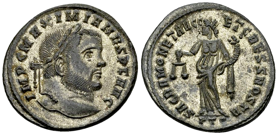 Obv. IMP C MAXIMIANVS P F AVG, Laureate head to right.