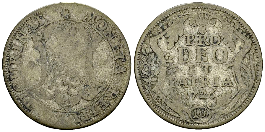 Schweiz, Zürich. AR 10 Schilling 1726 (4.74 g).