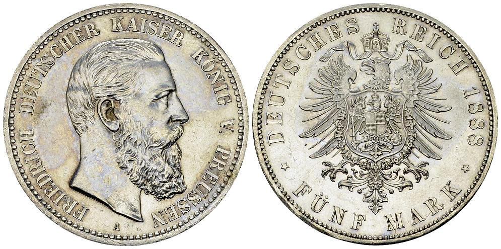 Deutschland, Preussen. Friedrich III. AR 5 Mark 1888 A (27.77 g).