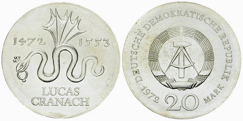 Deutsche Demokratische Republik. AR 20 Mark 1972 (A) (21.03 g), Cranach. AKS 825.