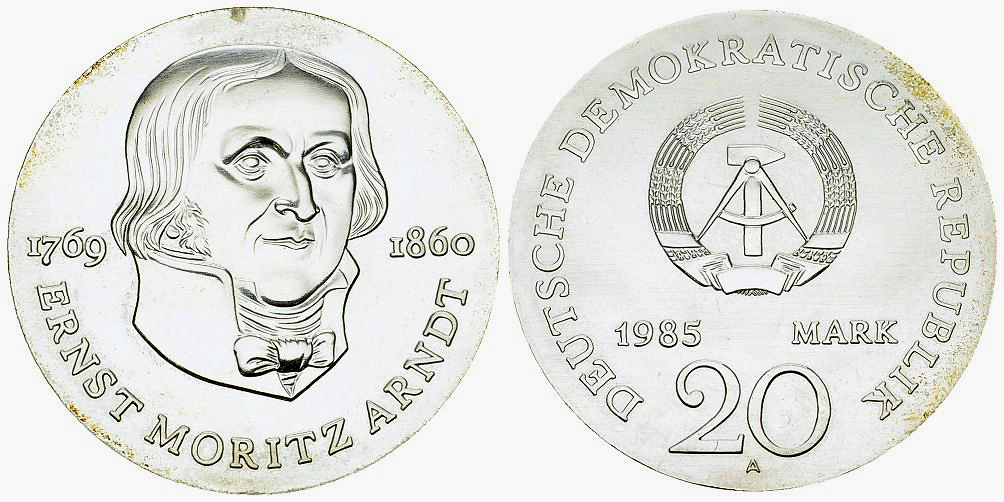 Deutsche Demokratische Republik. AR 20 Mark 1985 A (20.99 g), Arndt. AKS 842.
