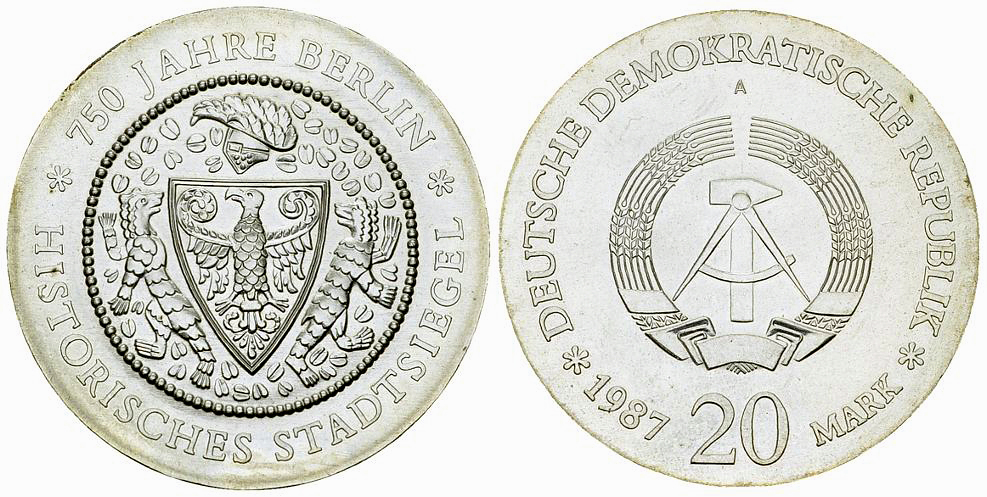 Lot 255. DDR, AR 20 Mark 1987, Stadtsiegel Berlin