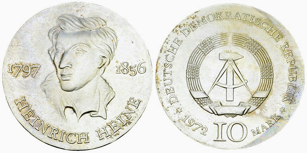 Deutsche Demokratische Republik DDR. AR 10 Mark 1972 (A) (16.95 g), Heine.