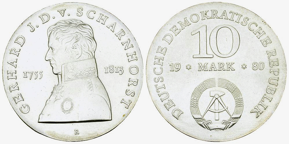 Deutsche Demokratische Republik DDR. AR 10 Mark 1980 (A) (17.04 g), Scharnhorst.
