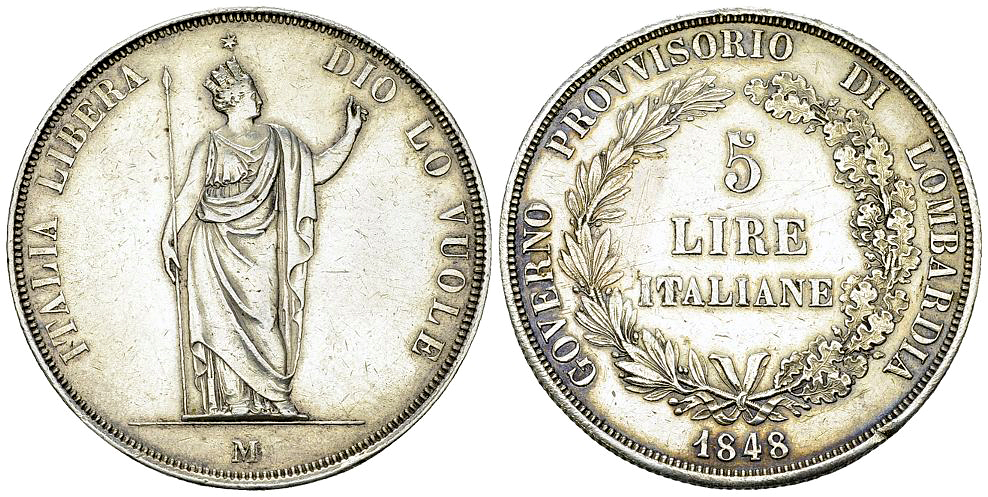 Lot 332. Italia, Governo Provvisorio di Lombardia, 5 Lire 1848