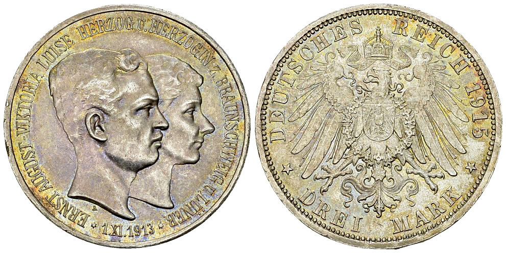 Lot 182. Braunschweig, AR 3 Mark 1915 A