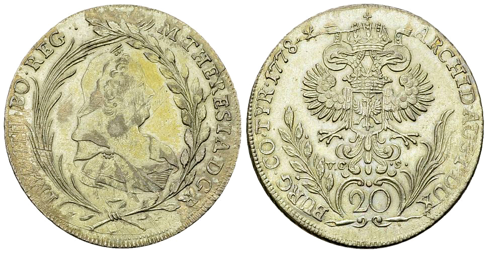 Lot 66. Maria Theresia, AR 20 Kreuzer 1778, Hall