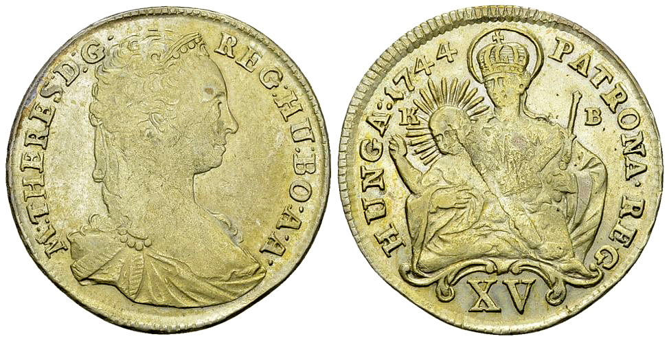 RDR. Maria Theresia (1740-1780). AR 15 Kreuzer 1744 KB (6.18 g), Kremnitz. Her. 1010.