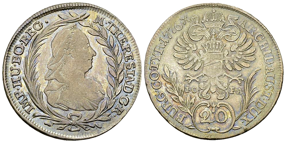 RDR. Maria Theresia (1740-1780). AR 20 Kreuzer 1776 IC FA (6.58 g), Wien. Her. 858.