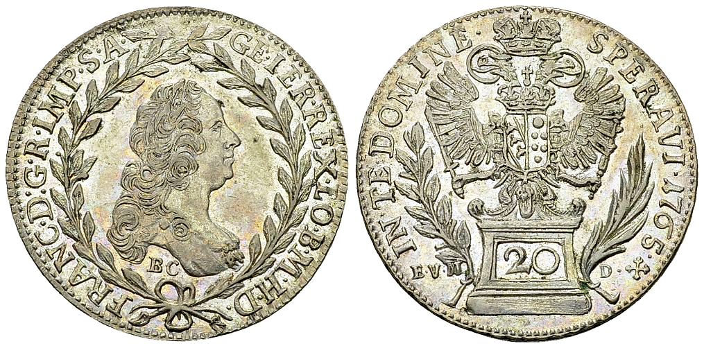 Los 312. Franz I Stephan, AR 20 Kreuzer 1765, Kremnitz