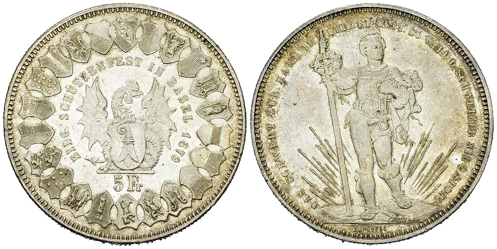 Lot 410. Basel, AR 5 Franken 1879, Eidg. Schützenfest