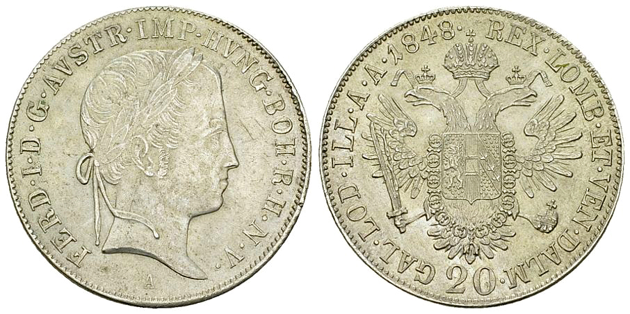 Lot 77. Ferdinand I, AR 20 Kreuzer 1848 A, Wien