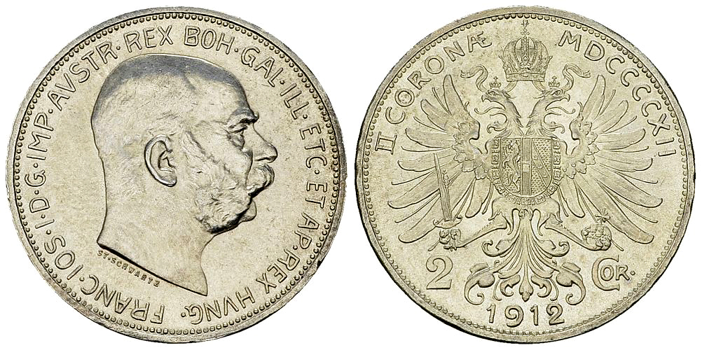 . Franz Joseph I, AR 2 Corona 1912