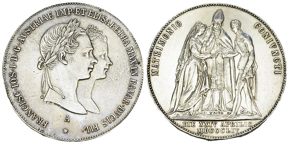 Austria. Franz I. AR Gulden 1854 A (12.92 g), Wien. Auf die Hochzeit mit Sissi.