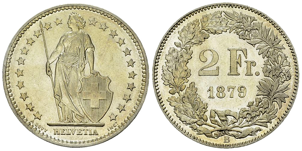 . Schweiz, AR 2 Franken 1879 B