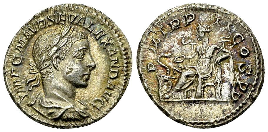 Lot 30. Severus Alexander AR Denarius, Salus reverse
