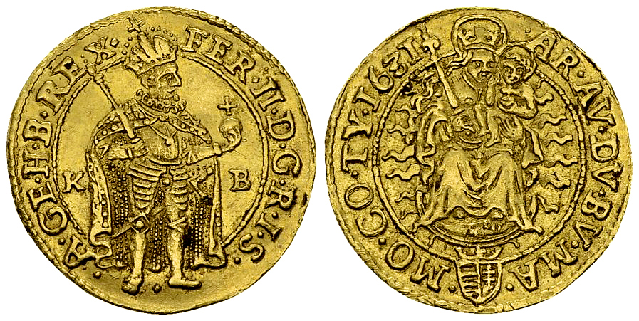 Hungary. Ferdinand II (1619-1637). AV Goldgulden-Dukat 1631 (3.47 g), Kremnitz. Husz. 1166; Fb. 98.
