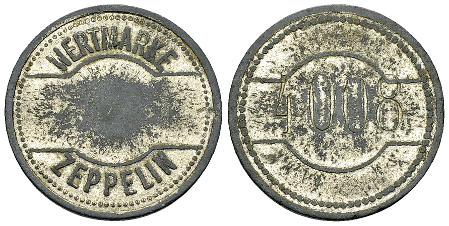 Deutschland. Zinn-Jeton o.J. (22 mm, 4.39 g), Wertmarke Zeppelin, Nr. 4008.