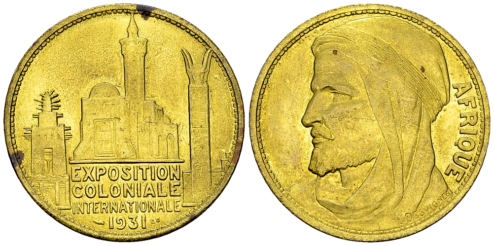 France, IIIe République. Médaille en laiton 1931 (32 mm, 19.73 g), Exposition coloniale internationale, Afrique. Par Desvignes.