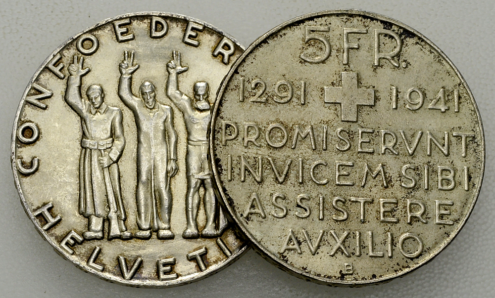 Schweiz, Eidgenossenschaft. Lot von 2 (zwei) AR 5 Franken 1941, 650 -Jahrfeier des Bundes.