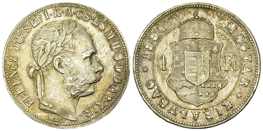 Hungary. Franz Joseph I. AR 1 Forint 1884 KB (12.34 g), Kremnitz.