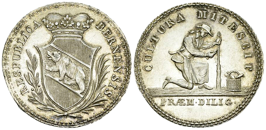Schweiz, Bern. AR Gärtnerpfennig zu 1 Franken o.J. (ab 1811) (7.37 g). Unsigniert, von Christian Fueter.