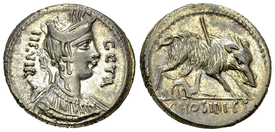 Lot 62. C. Hosidius C. f. Geta AR Denarius, 68 BC