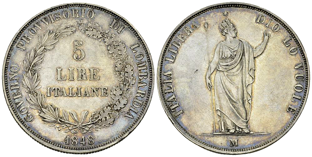 Italia. Governo Provvisorio di Lombardia. AR 5 Lire 1848 (24.97 g).