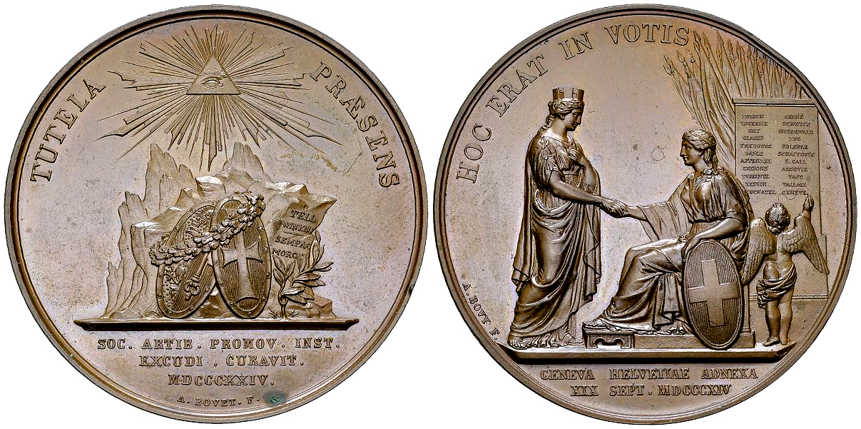 Lot 453. Genf, AE Medaille 1824, Beitritt zur Eidgenossenschaft