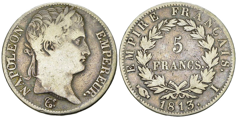 France. Napoléon I. AR 5 Francs 1813 I (24.34 g), Limoges. Gad. 584.