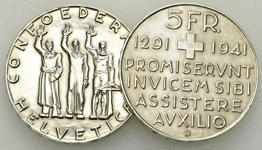 Schweiz, Eidgenossenschaft. Lot von 2 (zwei) AR 5 Franken 1941, 650 -Jahrfeier des Bundes.