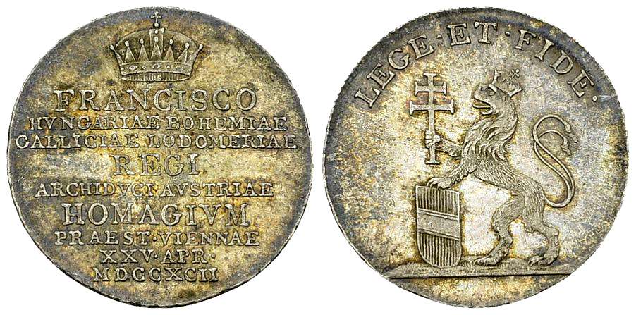 Los 68. Franz II, AR Jeton 1792, Böhmische Krönung in Prag