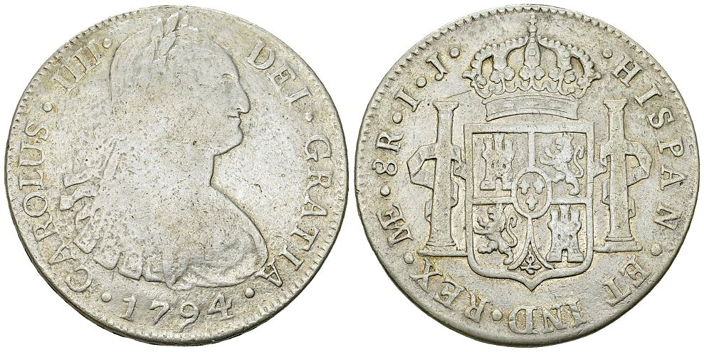 Peru. Carlos IV. AR 8 Reales 1794 LIMAE IJ (40 mm, 25.19 g), Lima.