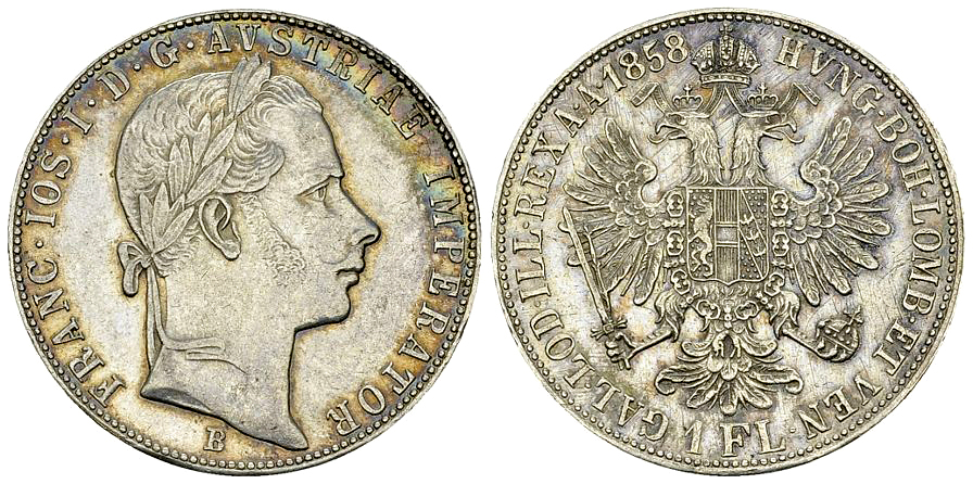 Lot 316. Franz Joseph I, AR 1 Florin 1858 B, Kremnitz