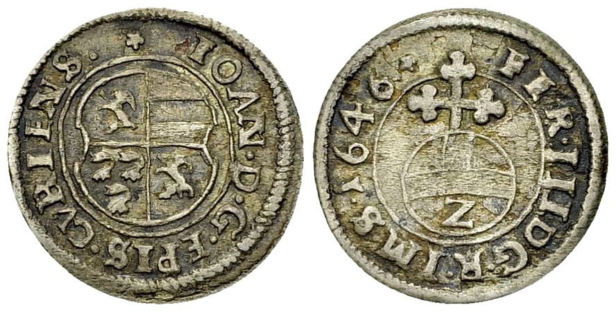 Schweiz. Graubünden, Bistum Chur. Johann VI Flugi von Aspermont (1636-1661). BI 2 Kreuzer (Halbbatzen) 1646 (19 mm, 0.80 g).