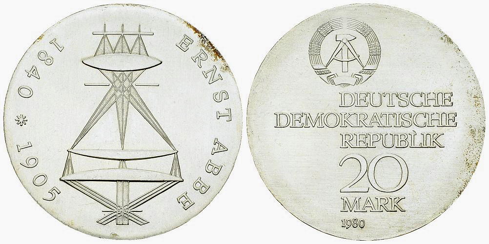 Deutsche Demokratische Republik. AR 20 Mark 1980 (A) (21.01 g), Abbe. AKS 836