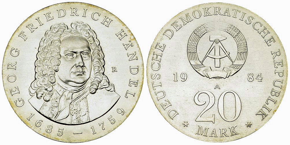 Deutsche Demokratische Republik. AR 20 Mark 1984 A (20.96 g), Händel. AKS 841.