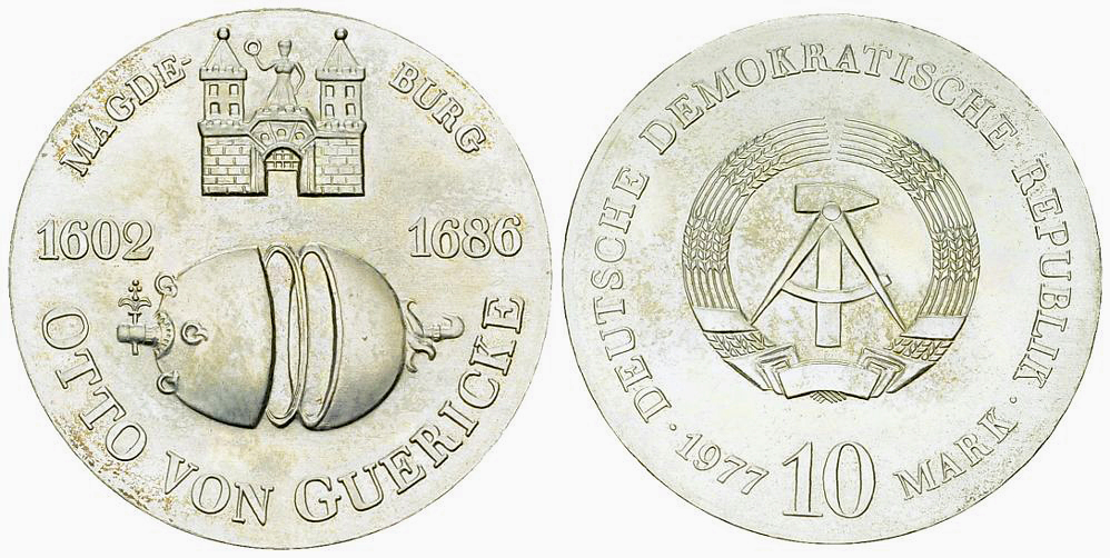 Deutsche Demokratische Republik DDR. AR 10 Mark 1977 (A) (16.98 g), von Guericke.