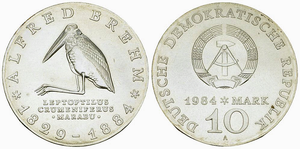 Deutsche Demokratische Republik DDR. AR 10 Mark 1984 A (16.98 g), Brehm.