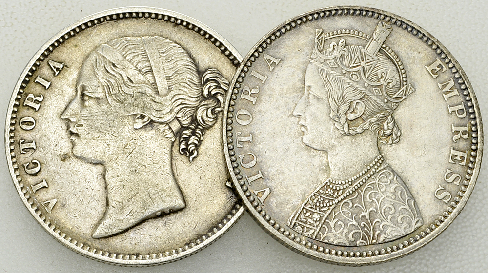 India, British. Lot of 2 (two) AR Rupees 1840, and 1891.
